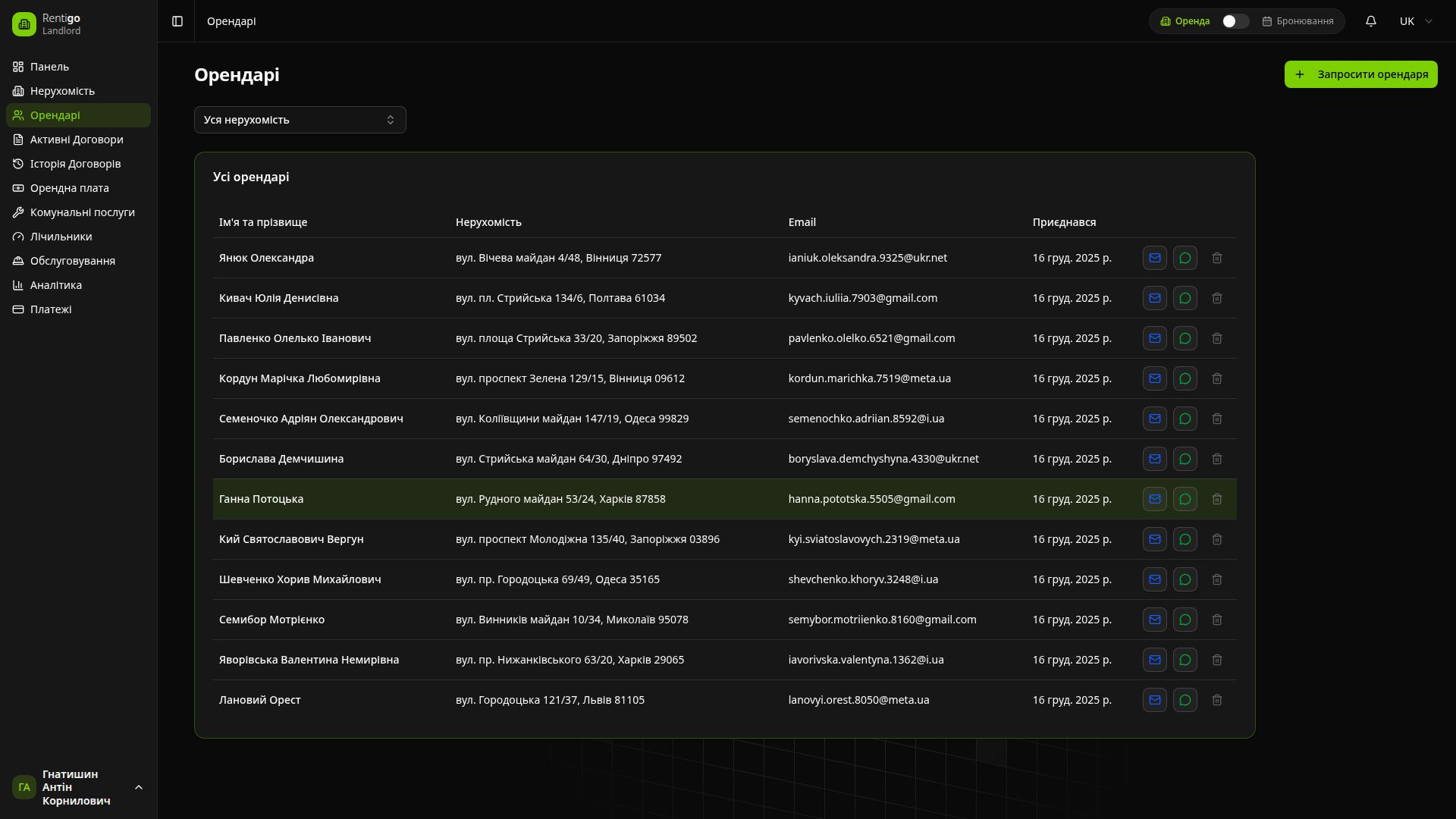 - Повне управління орендарями